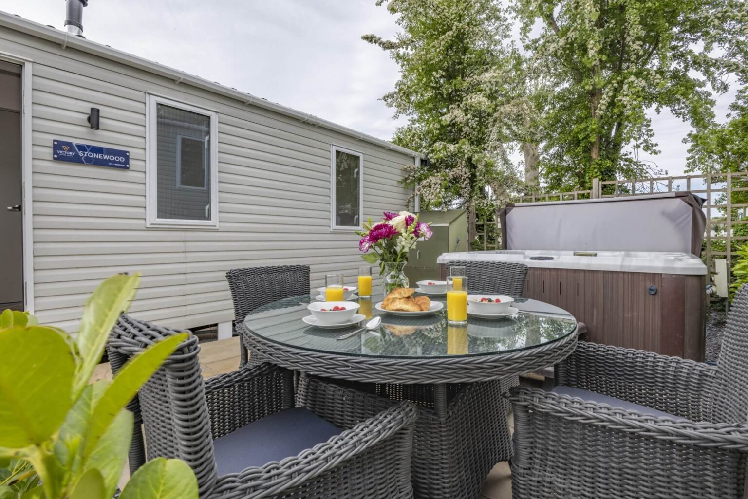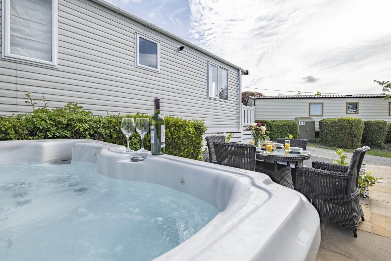The Treweryn caravan is perfect for couples or families looking for a bit of luxury, with a private hot tub, outdoor decking area & entertainment luxuries.