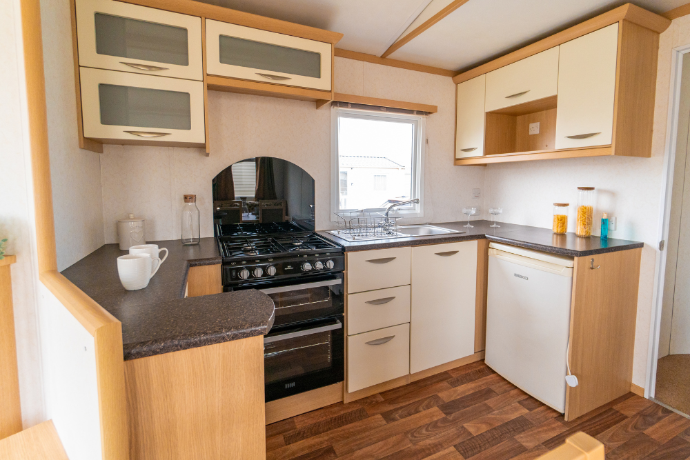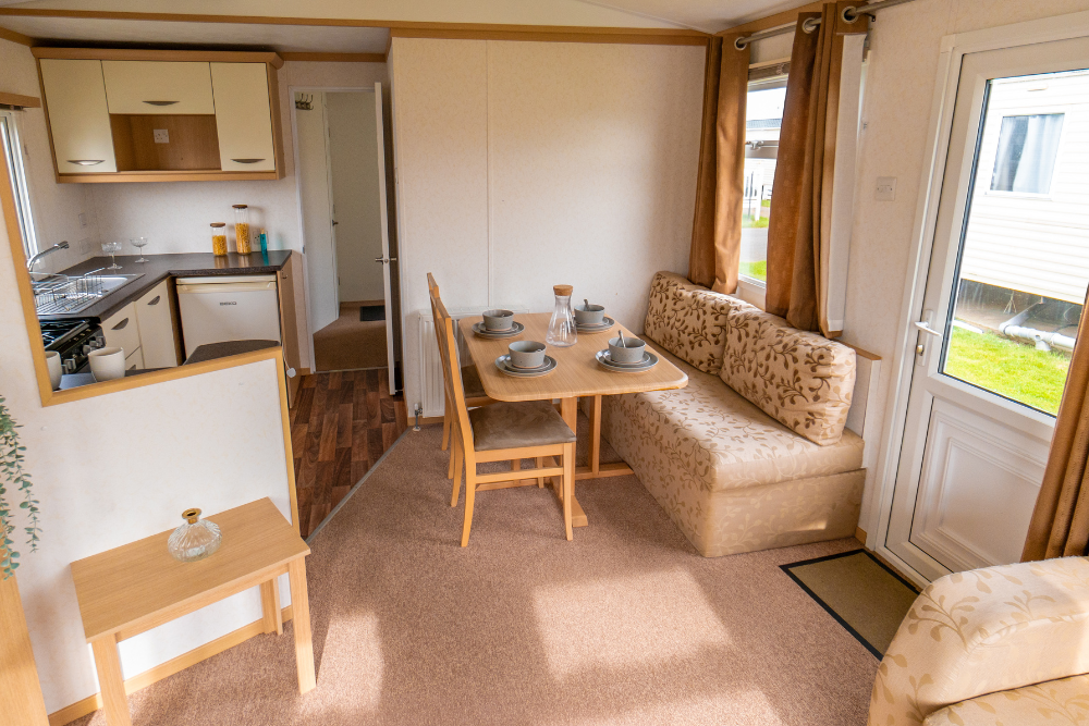 A stylish dining table sits perfectly alongside the modern kitchen, offering a practical yet inviting space for shared meals and relaxed gatherings. Thoughtfully designed, this holiday home delivers both comfort and functionality, making it ideal for families or couples looking for a peaceful retreat.