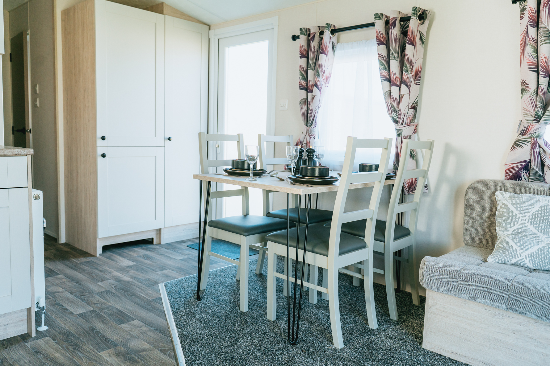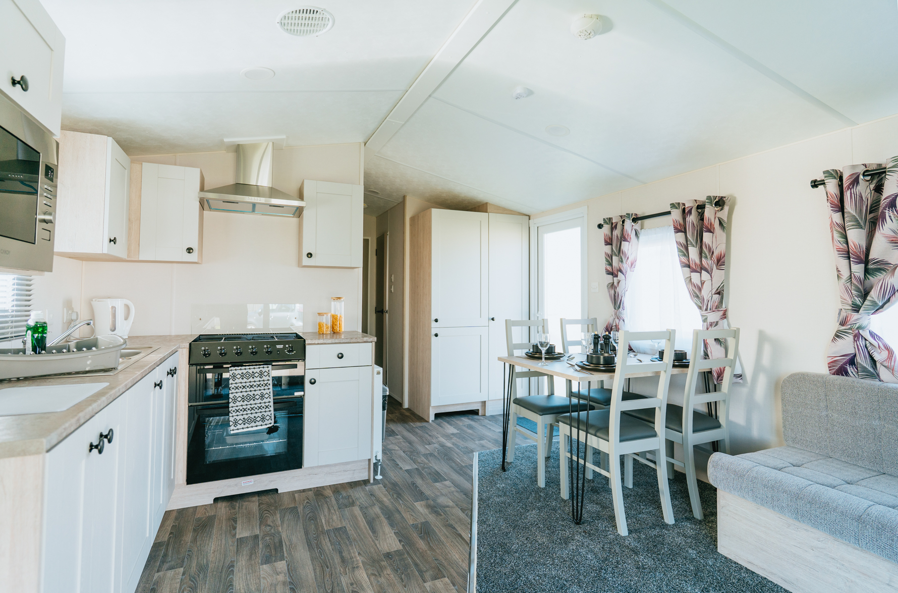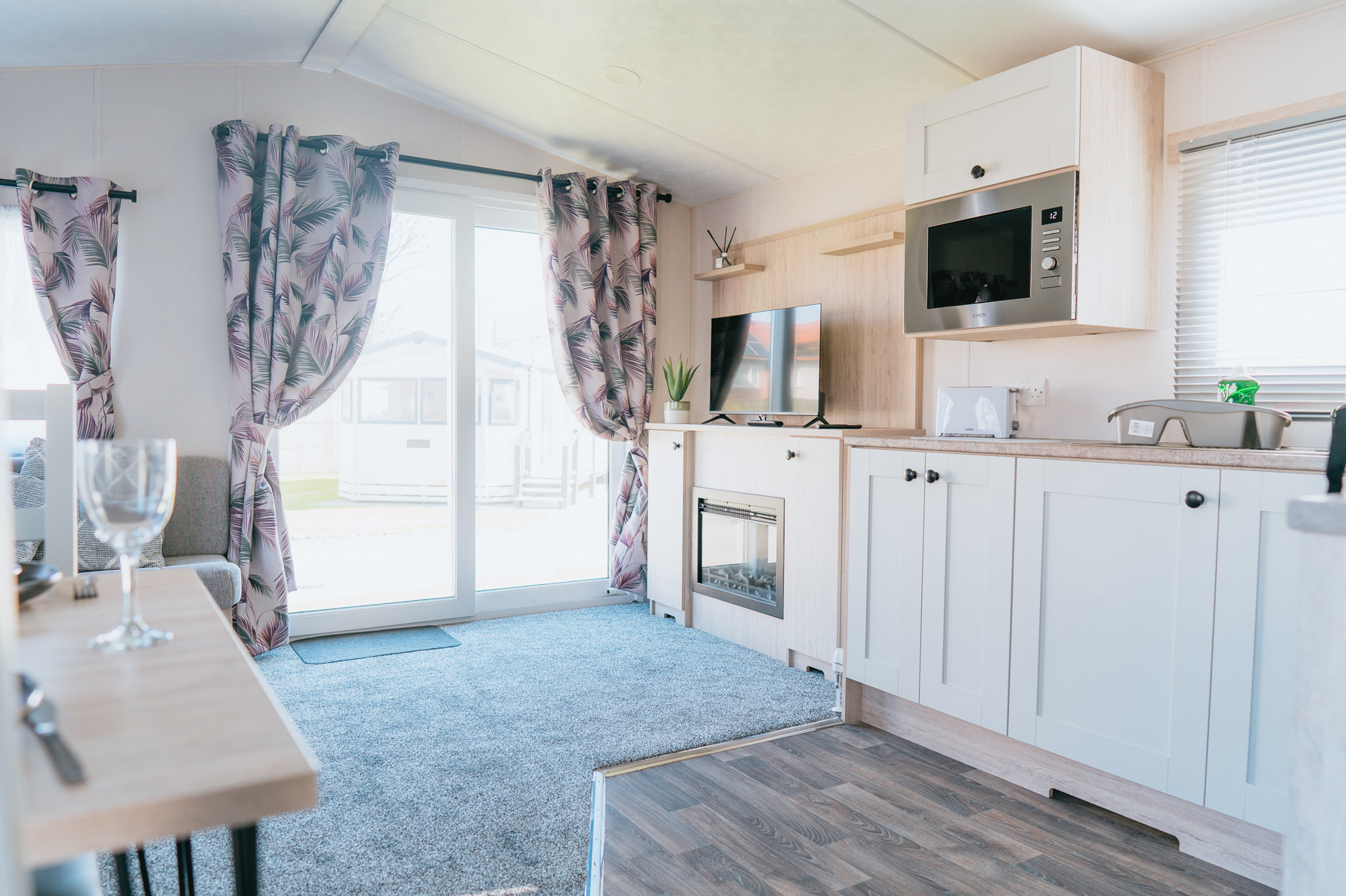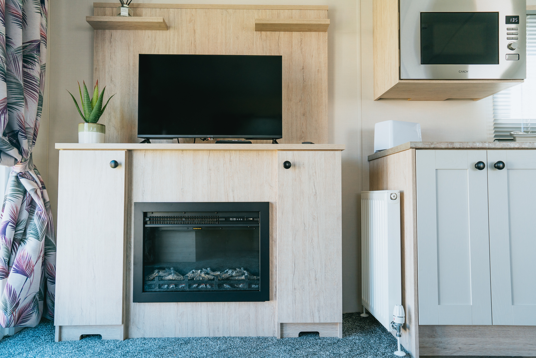 The Gold 2 Plus offers a spacious and comfortable holiday home sleeping up to 4 guests making it ideal for a relaxing self-catered family break. Sleeping up to 4 guests, this accommodation is fully equipped with everything you need for an enjoyable stay. Inside, you’ll find an open-plan kitchen, living, and dining area, complete with cosy seating and a fireplace perfect for unwinding after a day out. The property includes a family bathroom with a shower, one double bedroom, and one single bedroom. In addition to this the living room offers floor to ceiling patio doors enhancing the space offering plenty of natural light. The Juliette balcony creates the perfect place to relax and enjoy al fresco living. Double glazing and central heating ensure comfort all year round. Wi-Fi is available at an additional charge. Added extras include welcome pack and parking for two cars in our communal parking lot, extra parking is available throughout the park charges apply. Pets are not accepted in this accommodation. Check in from 3pm.
