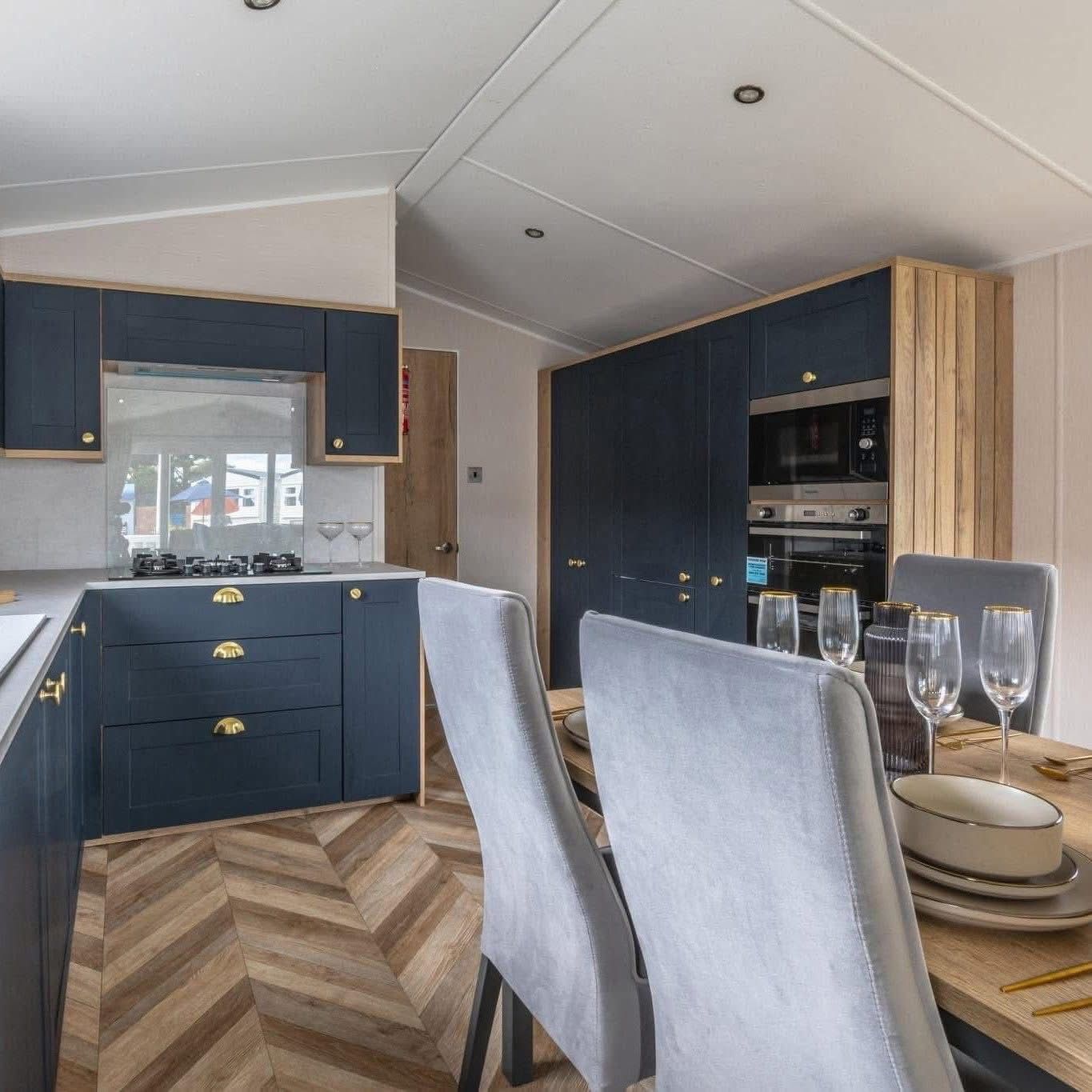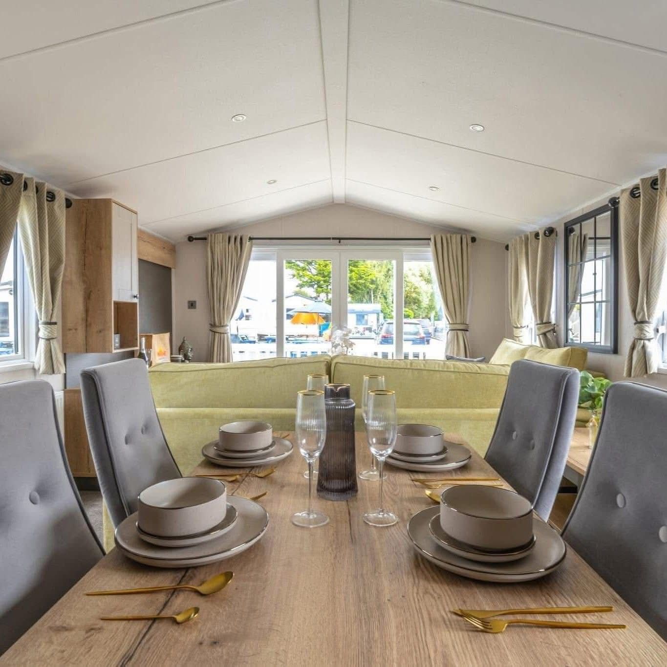 Inside, the Willerby Gainsborough impresses with a stylish open-plan layout, featuring a spacious lounge, elegant dining area, and a sleek, high-spec kitchen complete with integrated appliances and smart storage solutions. Large windows and neutral tones fill the space with natural light, creating a warm, welcoming atmosphere perfect for relaxing or entertaining.