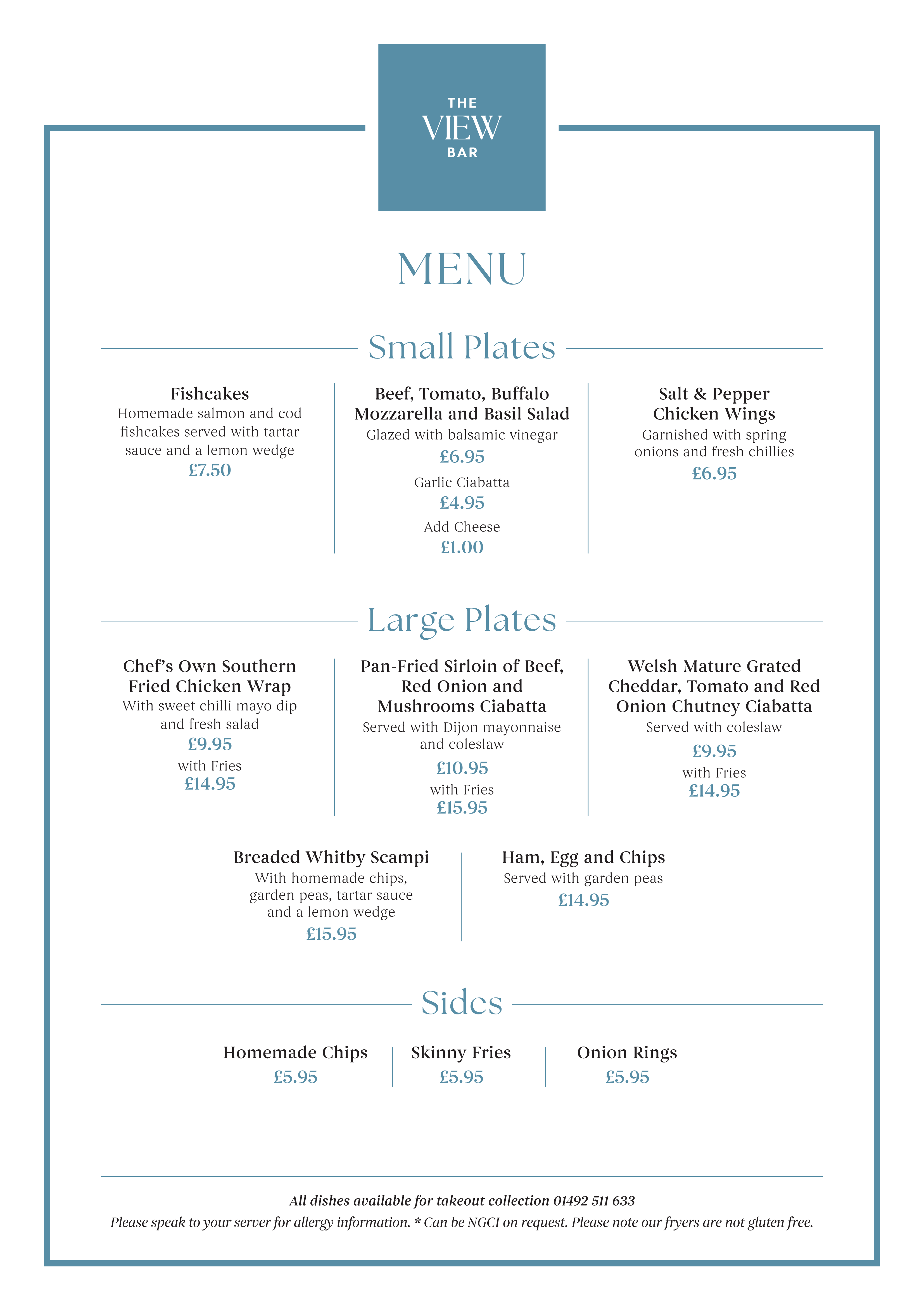 Located on the grounds of Tan Rallt Holiday Park, The View Bar is surrounded by stunning North Wales countryside which provides diners with a breath taking setting in which to dine in a warm and welcoming atmosphere.